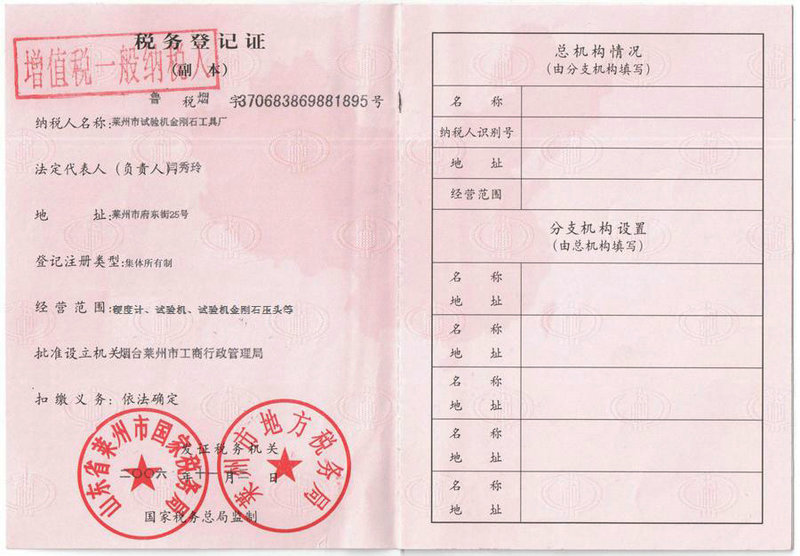 • 稅務(wù)登記證